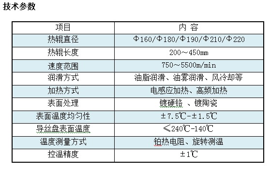 熱輥主要特點(diǎn) 1. 滌綸、錦綸絲熱輥利用電感應(yīng)加熱,熱管均溫或分段控溫技術(shù),使熱輥工作區(qū)表面溫度均勻。能滿足不同的工業(yè)絲、民用絲FDY紡絲工藝的要求 2. 丙綸絲熱輥利用電感應(yīng)加熱或高頻加熱技術(shù),使熱輥工作區(qū)表面溫度升溫迅速。該輥結(jié)構(gòu)簡(jiǎn)單,成本較低,運(yùn)行平穩(wěn)可靠,是丙綸FDY絲紡絲經(jīng)濟(jì)合理的選擇。 3. 高頻熱加熱輥利用電感應(yīng)加熱,通過將工頻電壓轉(zhuǎn)換成更高頻率的加熱電壓并采用分段控溫技術(shù),使工作區(qū)表面溫度均勻。該設(shè)備系統(tǒng)完善,結(jié)構(gòu)簡(jiǎn)單,在高溫下運(yùn)行平穩(wěn)可靠,能滿足不同纖維FDY紡絲工藝的要求。